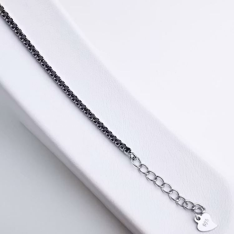 Diamond Black Legacy Silver Armband, Elegant, läcker armband som drar till sig all uppmärksamhet. Tidlöst design med många läckra Zirconium svarta stenar som ger armbandet ett lyxigt lyft. Hjärtat med ingraverat 925 ger armbandet ett tidligt kärleksfullt avslut. Perfekt för en utekväll med en snygg klänning.