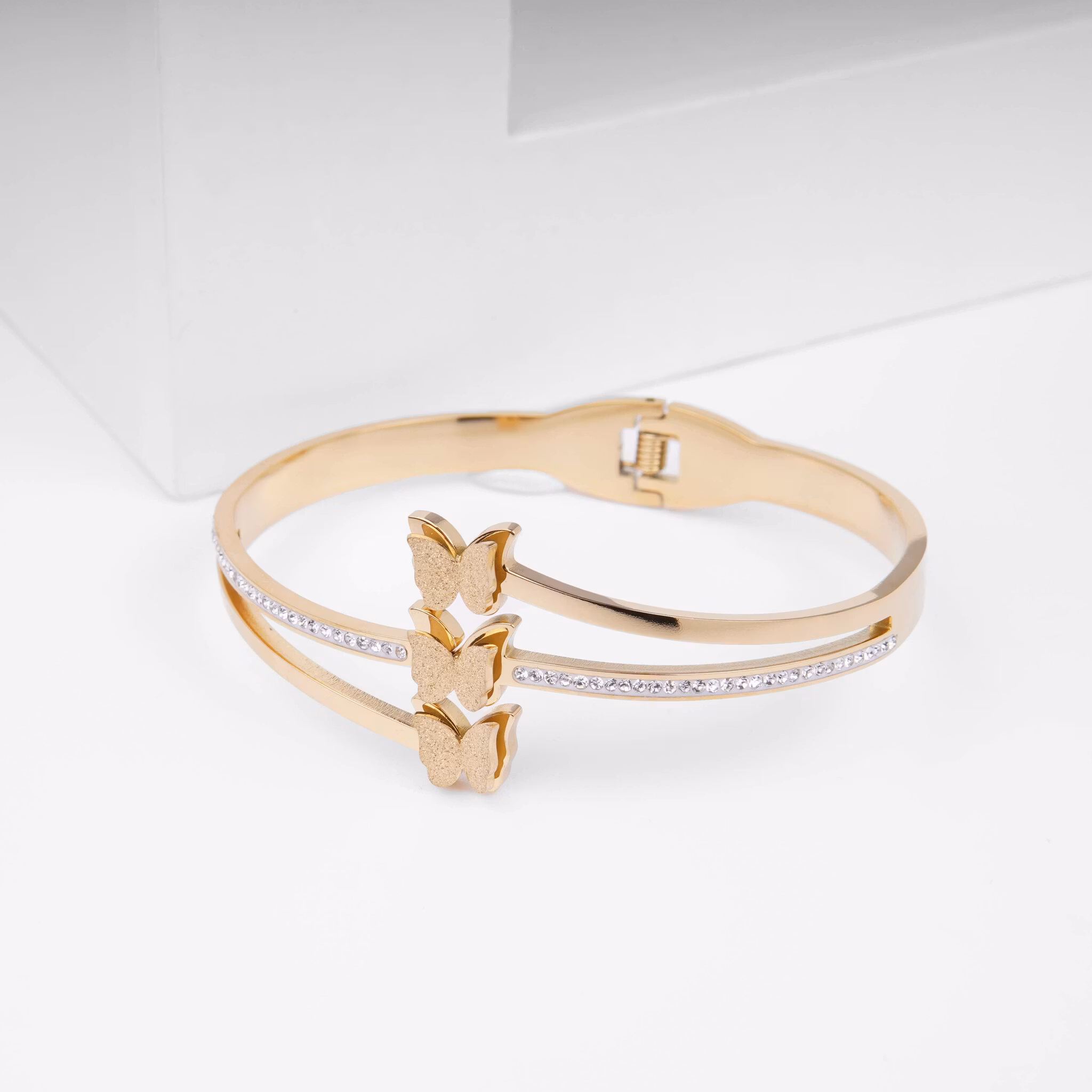 Butterfly Luxurious Limited Edition - Gold Edition Armband Dam från SWEVALI är ett elegant, tidlöst, stilrent och flexibelt armband. Fjäril design är väldigt omtyckt, designer har valt att ge denna armband ett speciellt avtryck och lämna ifrån sig ett armband som sticker ut ur mängden.