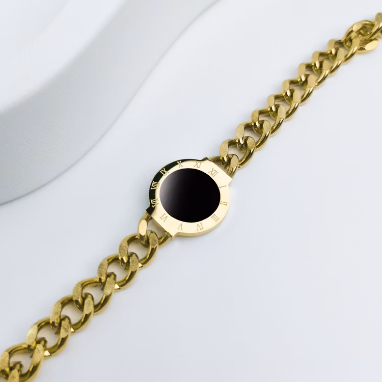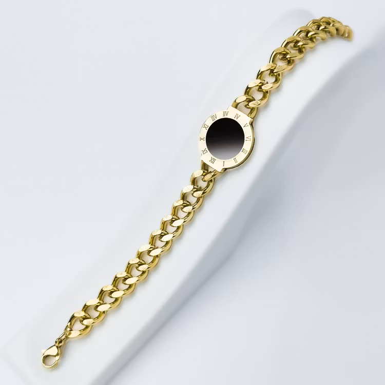 Era Elegance Woman Confidence Gold Edition Armband är ett vackert, elegant och tidlöst armband. Armbandet består av många sammanhängda länkar i form av kedja som möter en elegant välkänd symbol med ingraverat Romerska siffror runt om.