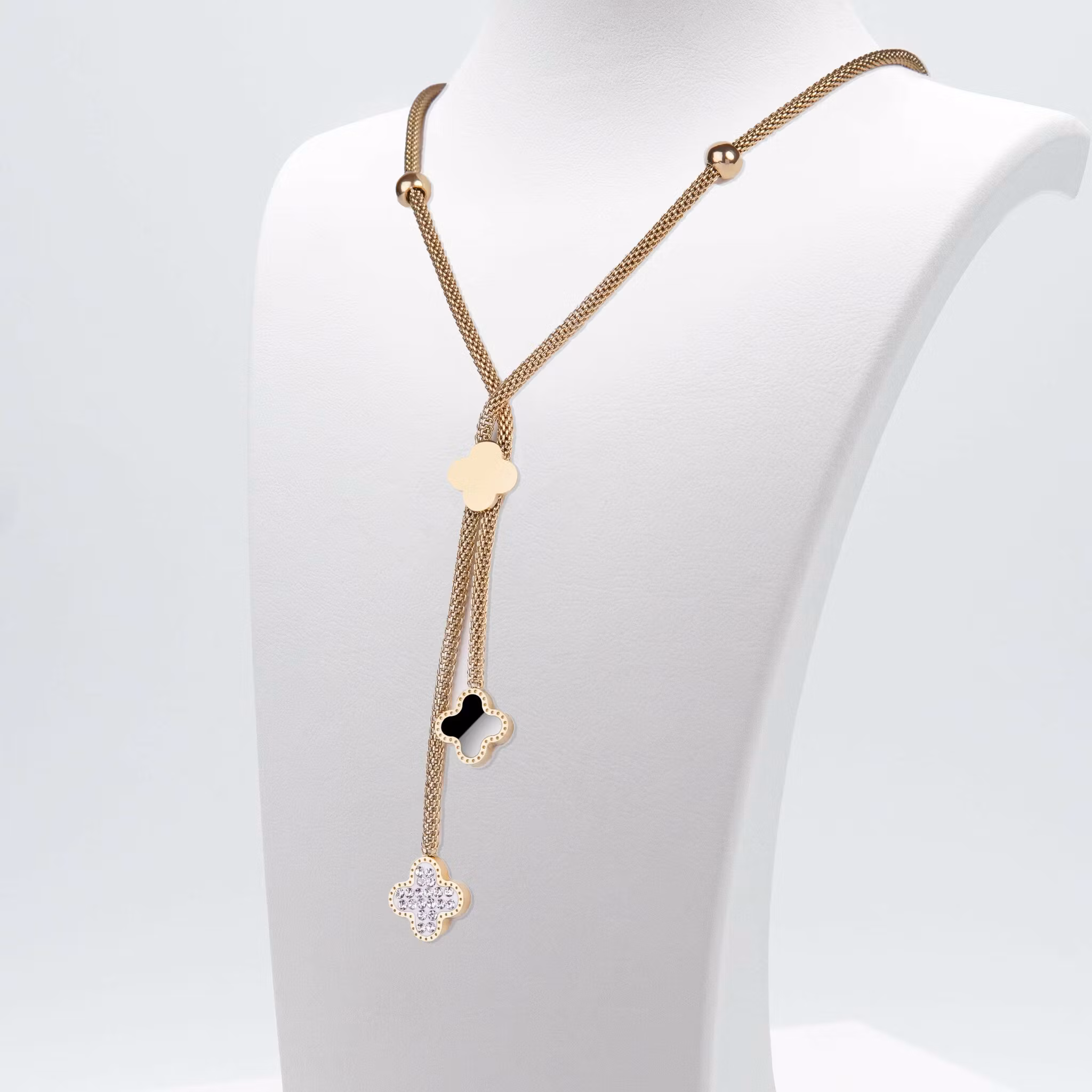 Clover New Age - Gold Edition Halsband Dam från SWEVALI är en tidlös, elegant och charmig halsband. Halsbandet består av en modern länk med tre vackra fyrklöver, fyrklöver är ett väldigt känd symbol som oftast förknippas med tur när den hittas av en slump och de fyra bladen sägs stå för tro, hopp, kärlek och lycka.