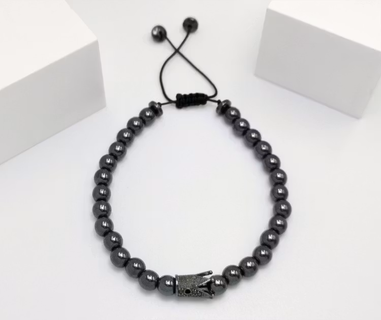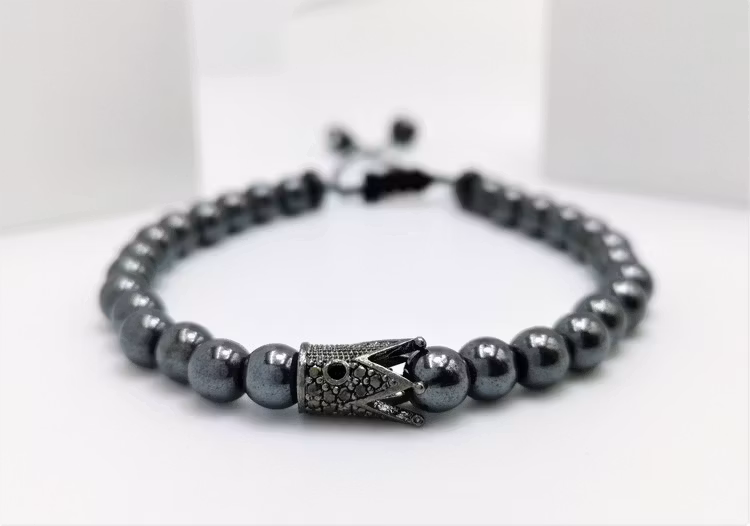 KUNG GREY Pärlarmband, elegant armband. Känner du dig unik? Då passar den här armbandet perfekt för din stil. Kronan har funnits i hundratals år och har funnits i dem flesta kulturer. Det här armbandet har en väldigt stilren design en kombination av pärlor och en snygg krona i mitten.